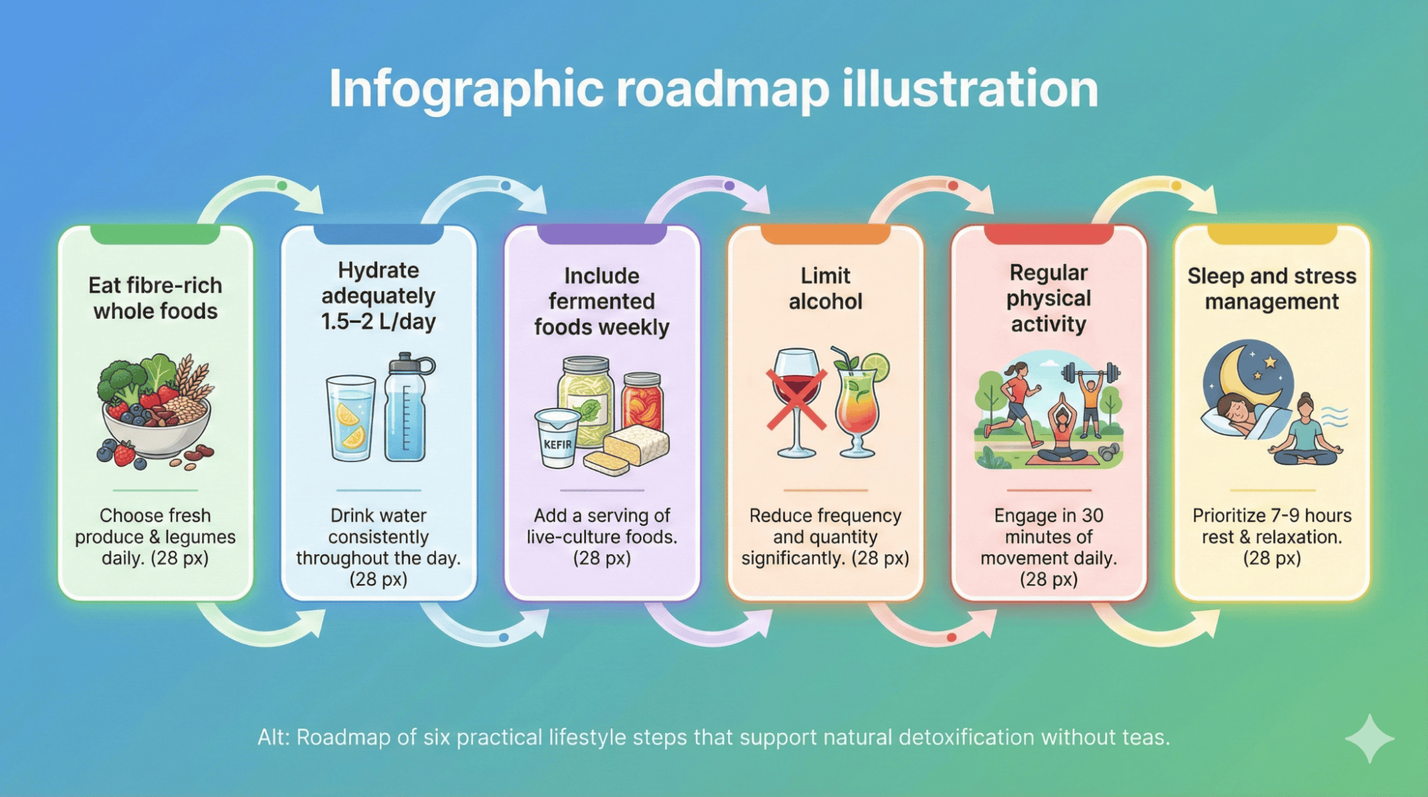 Start this week by drinking warm water with lemon each morning supporting gentle liver stimulation. Additionally, increase vegetables and leafy greens ensuring 25-30g daily fiber supporting digestive elimination. Include traditional ginger or tulsi chai replacing commercial teatox products with authentic simple preparations.