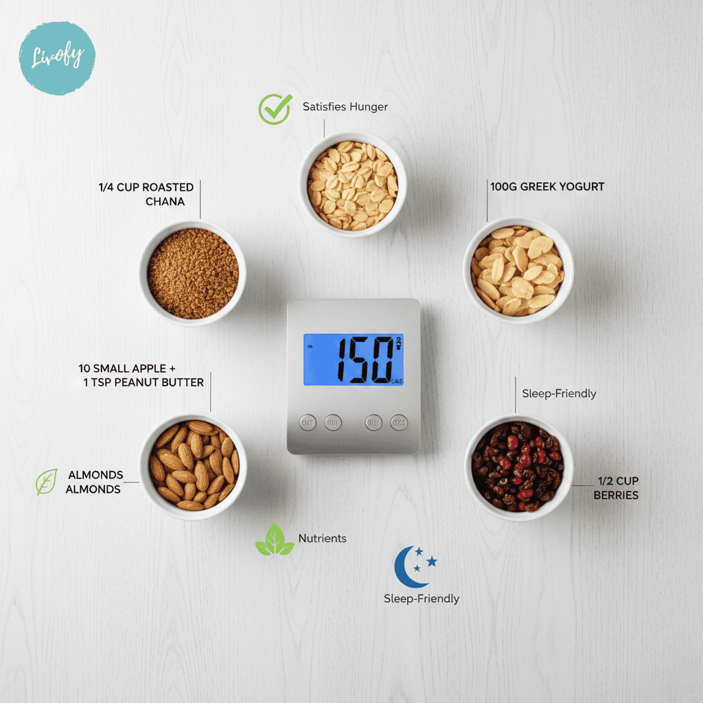 When you choose a nutrient-rich snack under 150 calories, that can be surprisingly filling while focusing on foods with protein, fibre, or healthy fats which keep you satisfied and support overnight recovery.