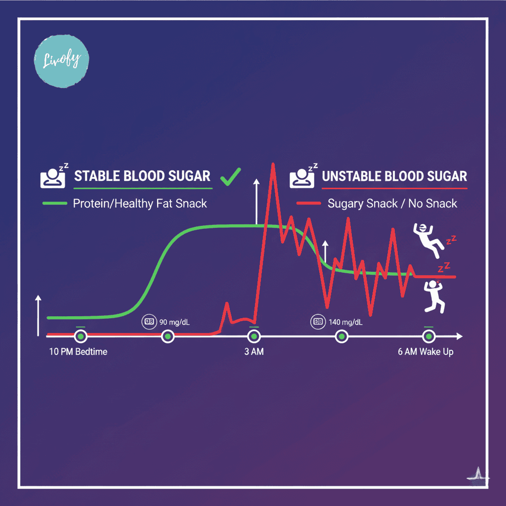 When you eat snacks with protein, healthy fats, or complex carbs, you maintain stable blood sugar overnight. This prevents those 3 AM wake-ups from blood sugar drops.