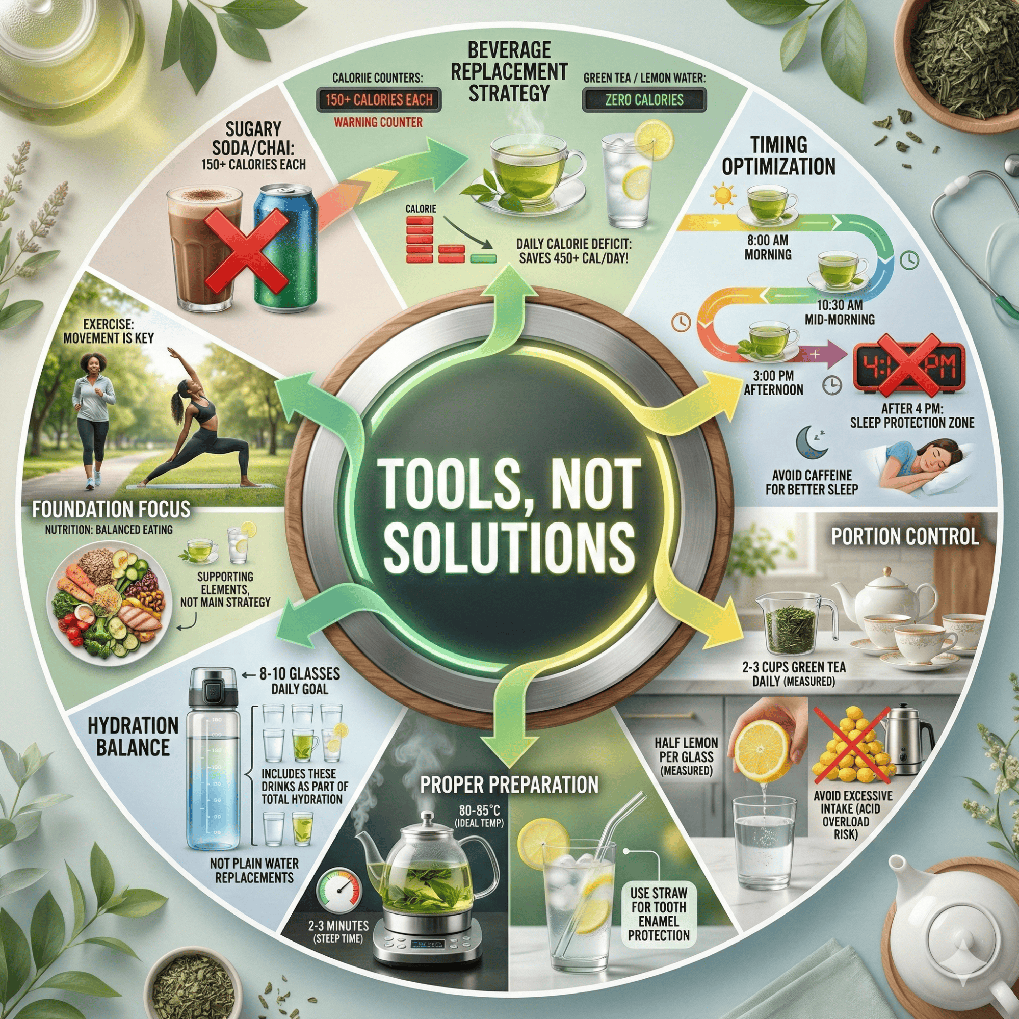 Many Indians sabotage themselves unknowingly. Obsessing over green tea vs lemon water debate wastes mental energy better spent on meal planning or exercise. Following social media trends buying expensive branded versions doesn’t improve results. Additionally, using these drinks to justify poor eating (“I had green tea so I can eat this samosa”) creates net negative effects. Drinking green tea late disrupts sleep, harming metabolism more than green tea improves it. Moreover, not addressing fundamental issues like sedentary lifestyle, stress eating, or poor sleep while believing these drinks will compensate is delusional thinking. Success requires a comprehensive healthy lifestyle where these drinks play tiny supportive roles.