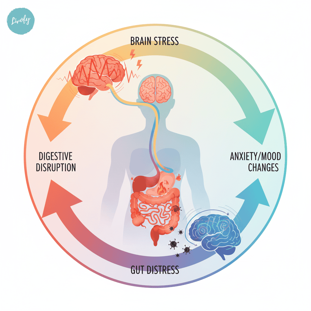 When you’re stressed, your brain sends signals that alter your gut motility, change bacteria composition and trigger inflammatory responses. Chronic stress actively damages your gut microbiome balance, reducing good bacteria while allowing harmful strains to take over.