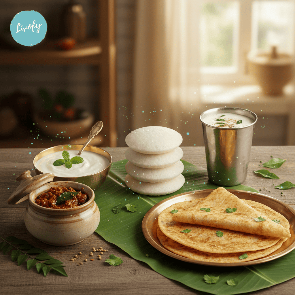 Indian kitchens have treasured fermented foods for generations, and science is now confirming what our grandmothers already knew. Idli and dosa batter, fermented overnight, creates beneficial bacteria that strengthen your microbiome. Homemade yoghurt (dahi) provides live probiotic cultures that produce mood-regulating neurotransmitters, making it an excellent daily addition for gut and mental health support.