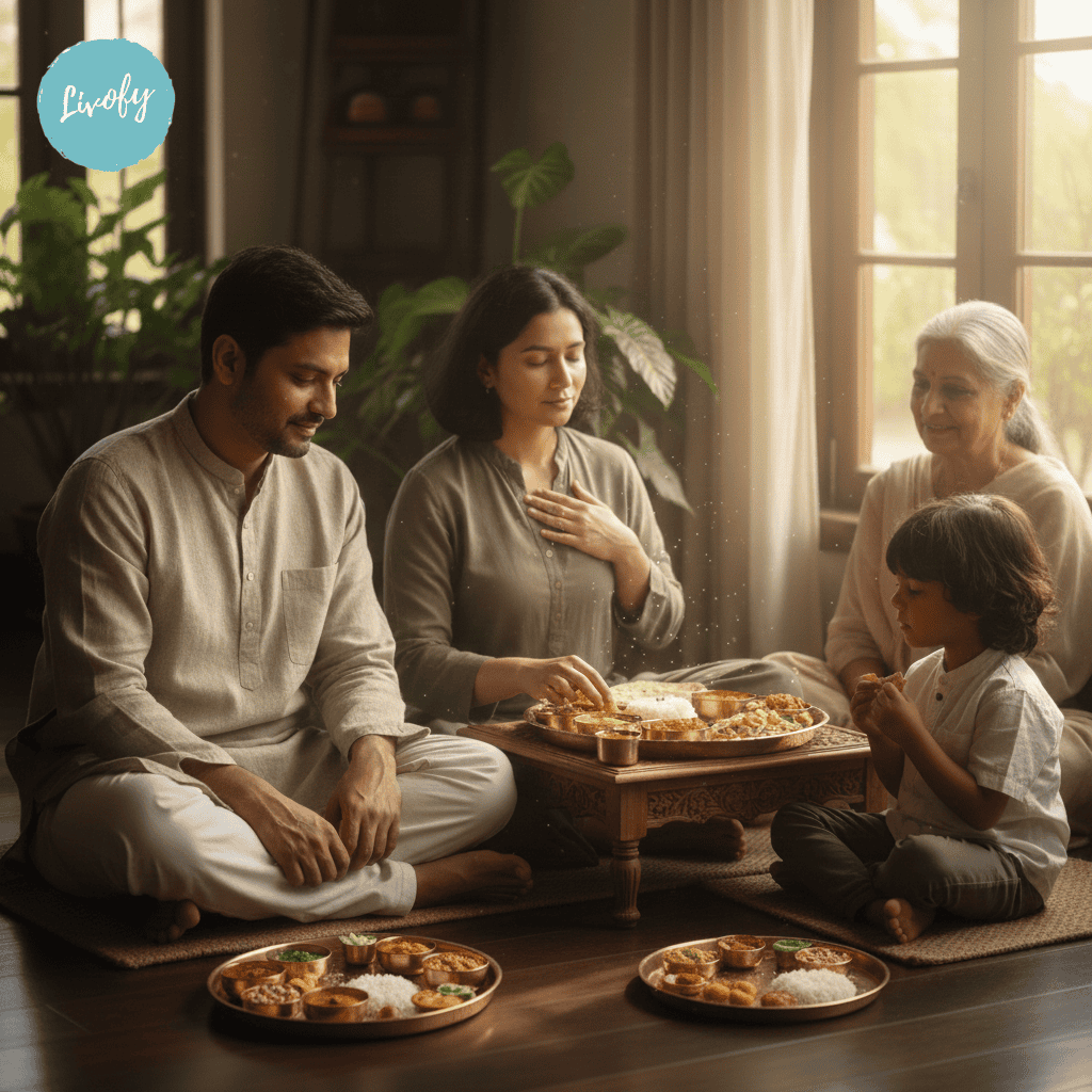 Creating pleasant, relaxed meal experiences, traditional in Indian family dining, naturally supports both digestive and mental health through reduced cortisol and improved digestion. Make meals a time to slow down and actually enjoy your food.