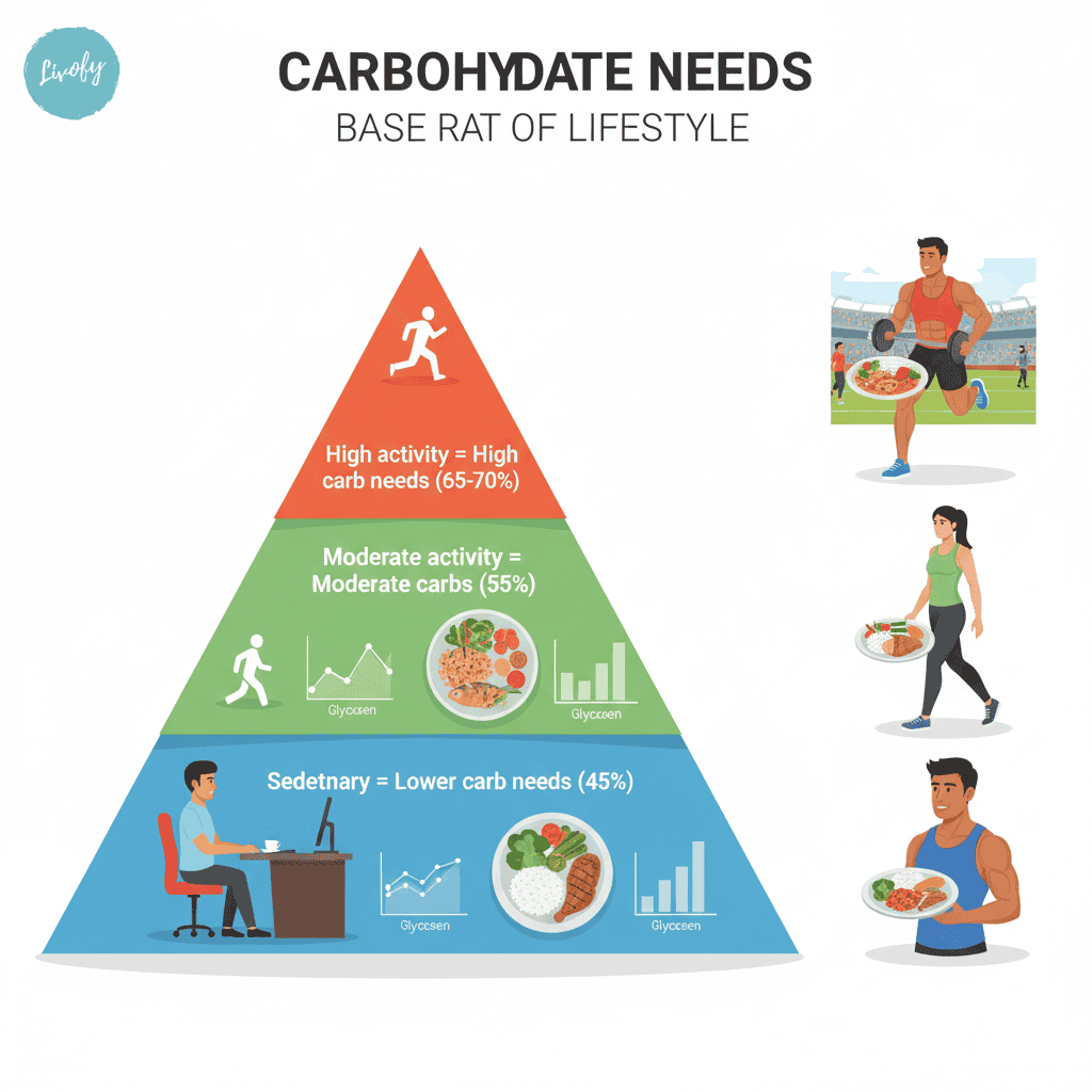 If you’re sedentary, you need fewer carbs but should still include them for fiber, vitamins, and minerals. Focus on vegetables, legumes, and small portions of whole grains.