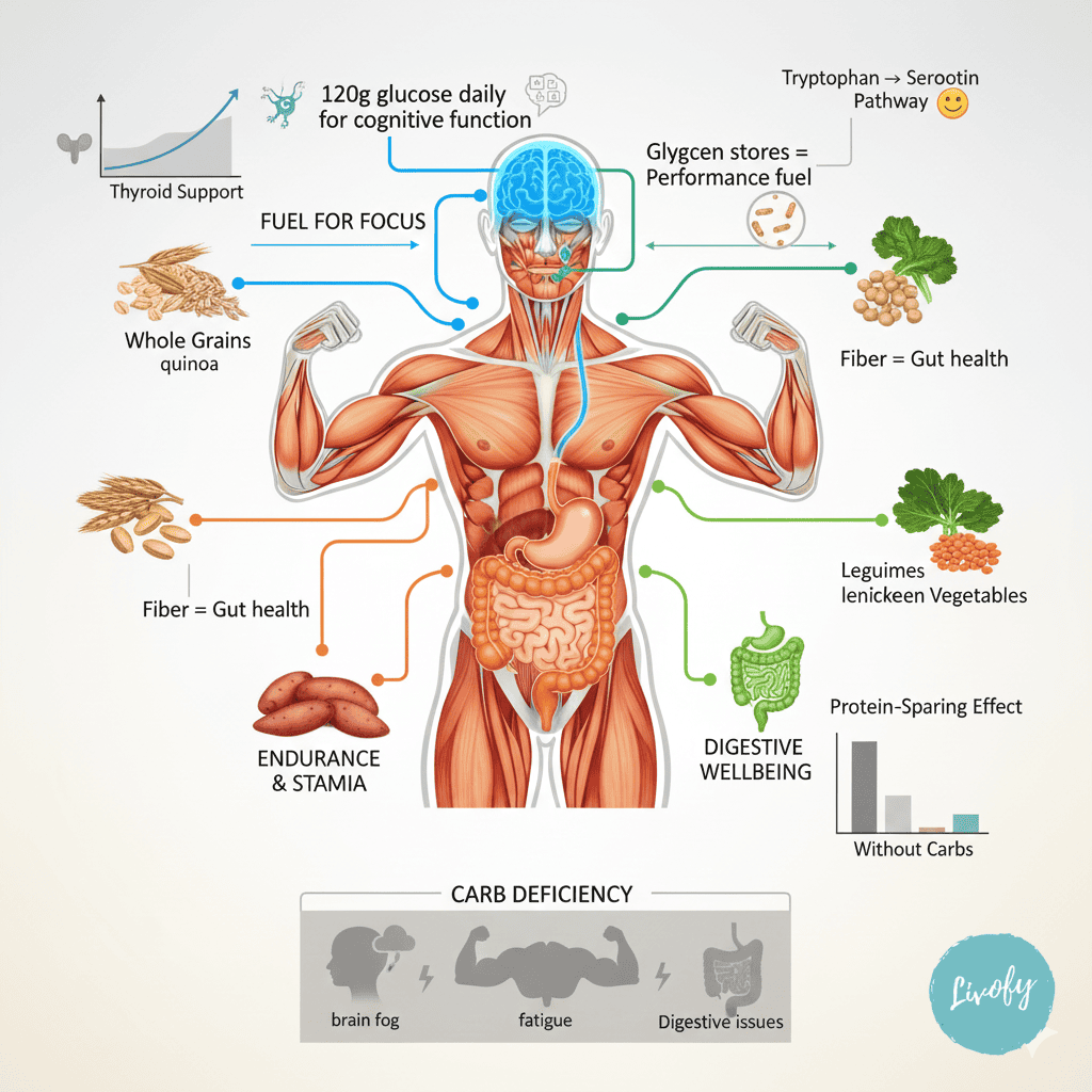 Your brain runs on glucose. Your muscles store carbs as glycogen for energy. Every cell uses them for basic processes. This isn’t controversial; it’s basic biology.