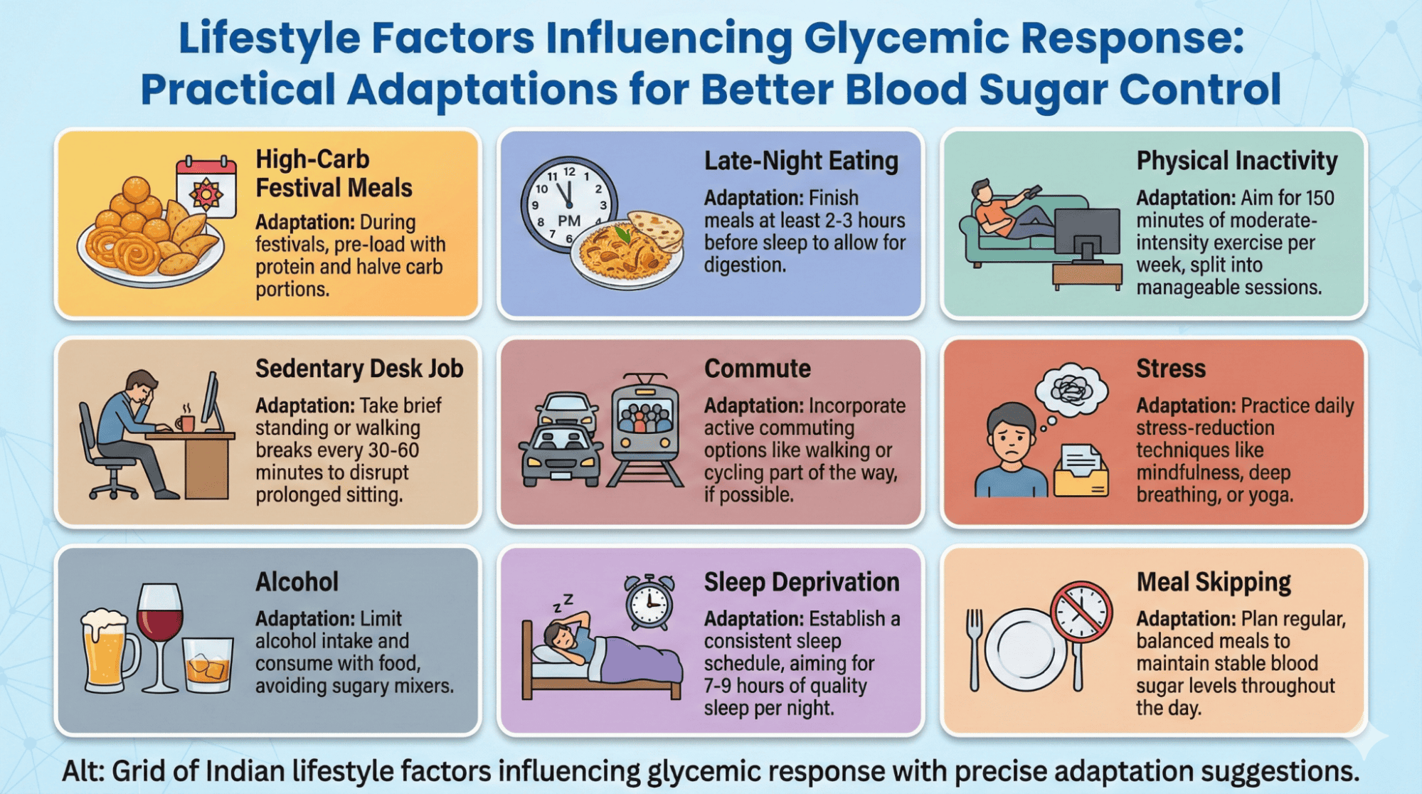 Sleep and stress affect carbs for diabetics metabolism and blood sugar control. Inadequate sleep increases insulin resistance by 30% making blood sugar harder to control despite perfect diet. Additionally, chronic stress elevates cortisol raising blood sugar and promoting abdominal fat storage. Moreover, poor sleep increases hunger and cravings for high-glycemic carbs worsening control. Solutions include prioritizing 7-8 hours quality sleep, establishing stress management through meditation or yoga, and recognizing rice vs roti for diabetics choices work optimally when lifestyle supports metabolic health. Therefore, comprehensive approach beyond just food supports diabetes management.