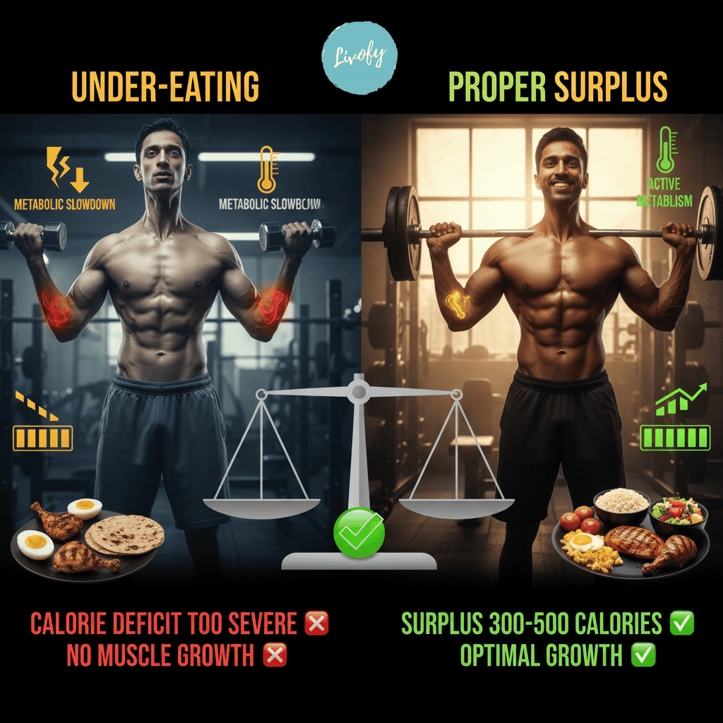 The BIGGEST mistake? Not eating enough. You can’t build muscle in a severe calorie deficit. Your body needs extra energy to build new tissue.