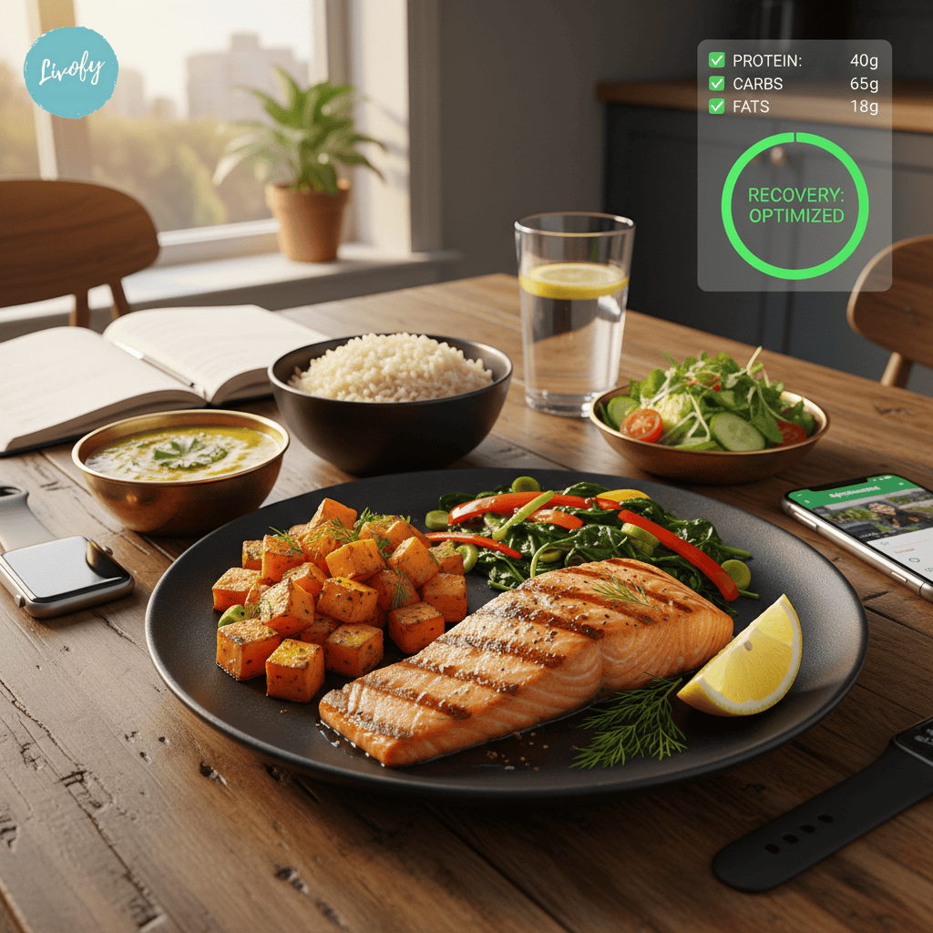 Within 2-3 hours of training, have a complete meal. This should include all macros to support recovery and growth. Grilled fish with sweet potato and veggies. Chicken biryani with raita. Tofu curry with brown rice.