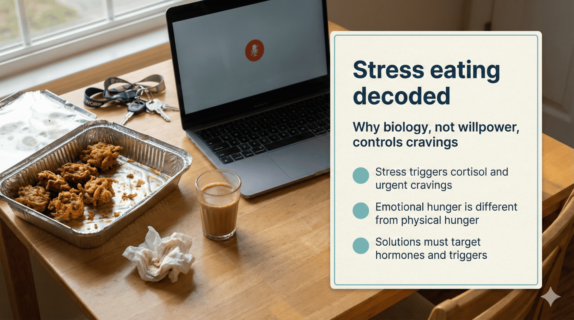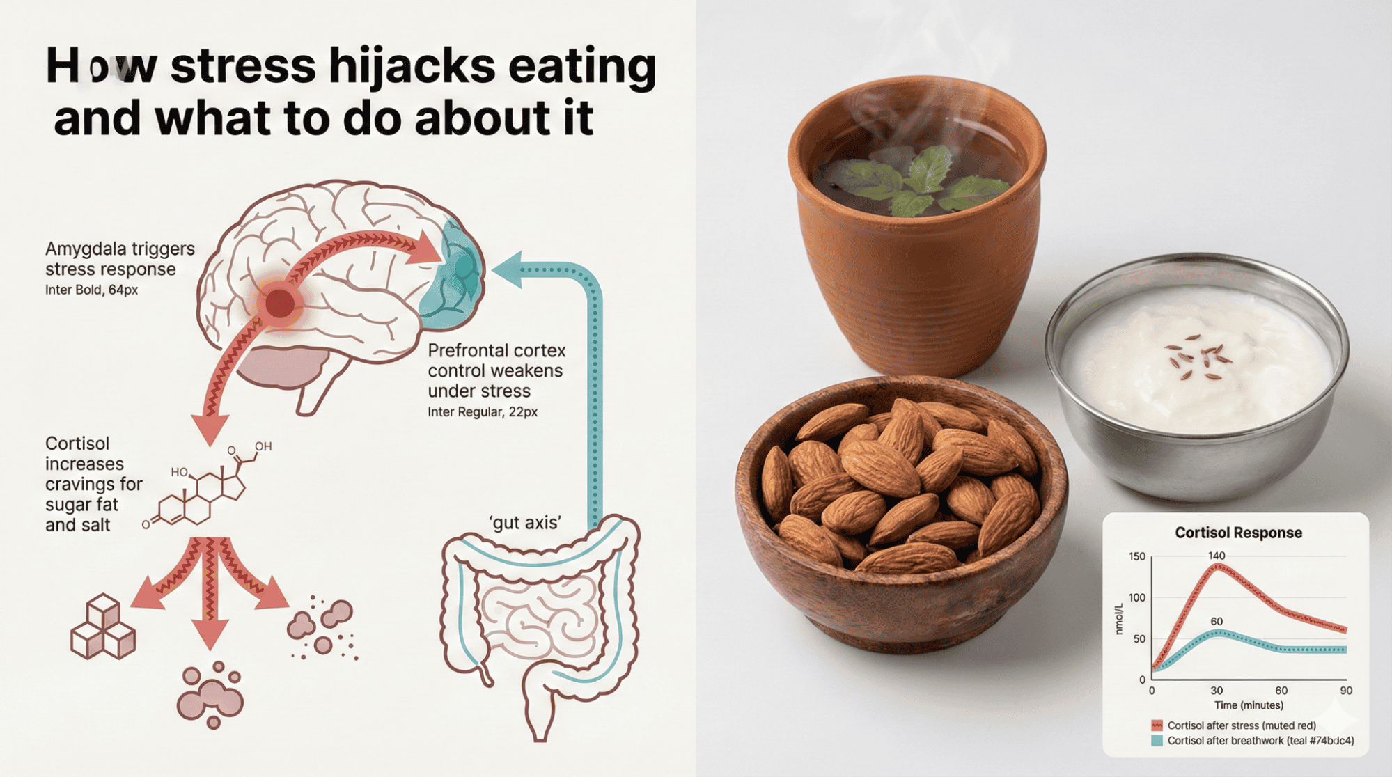 You finish a stressful work call and suddenly find yourself standing at the fridge, eating leftover pakoras without even remembering how you got there. The answer lies in understanding stress eating solutions that address cortisol and cravings rather than just willpower that fails you repeatedly every evening. Most Indians blame lack of discipline when the real culprit is biology hijacking your brain during stressful moments throughout the day. This guide reveals the science behind emotional hunger and gives you practical fixes that actually work for Indian lifestyles and food preferences.